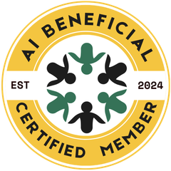 As an AI BENEFICIAL Certified Member, Partner, Sponsor, Affiliate, and Friend, you help to grow a community of for-profit brands committed to the global movement of building a more inclusive and sustainable environment with AI that works for and promotes individuals and companies, not just AI dedicated to replacing humans, and enriching a few. Together, we pledge to encourage AI that multiplies the human work ethic, is safe, and respects our privacy and intellectual property.