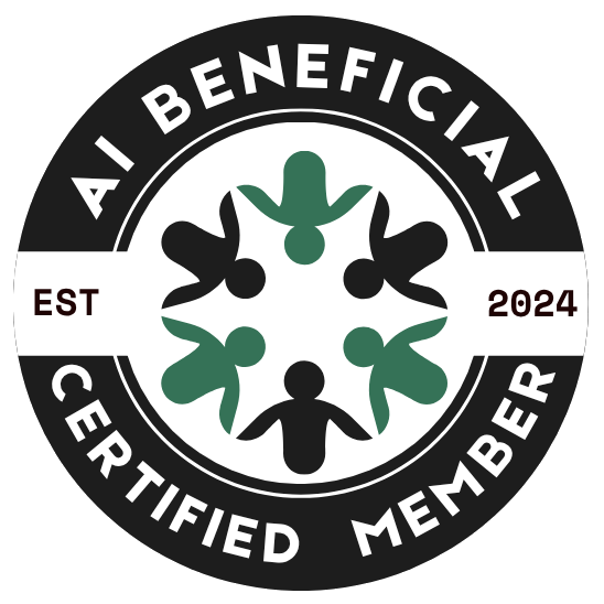 As an AI BENEFICIAL Certified Member, Partner, Sponsor, Affiliate, and Friend, you help to grow a community of for-profit brands committed to the global movement of building a more inclusive and sustainable environment with AI that works for and promotes individuals and companies, not just AI dedicated to replacing humans, and enriching a few. Together, we pledge to encourage AI that multiplies the human work ethic, is safe, and respects our privacy and intellectual property.